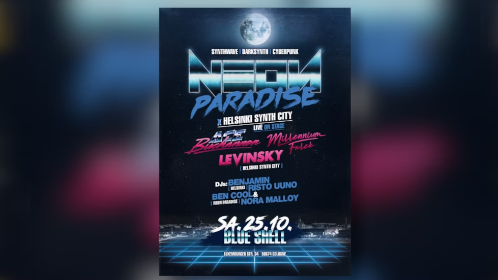 I’ll be sharing the stage in Neon Paradise with Ace Buchannon, DJ BRU and Levinsky for what promises to be an unforgettable night of synth-driven sounds and electric energy. There’s something surreal about seeing your name on an event outside your own borders – it feels both exciting and slightly nerve-wracking in the best possible way.